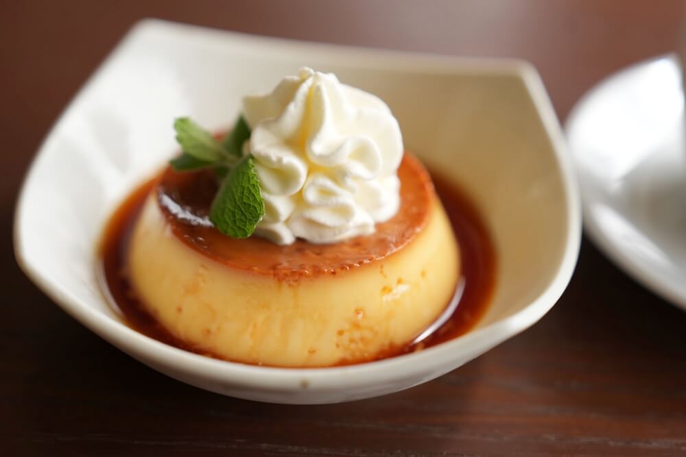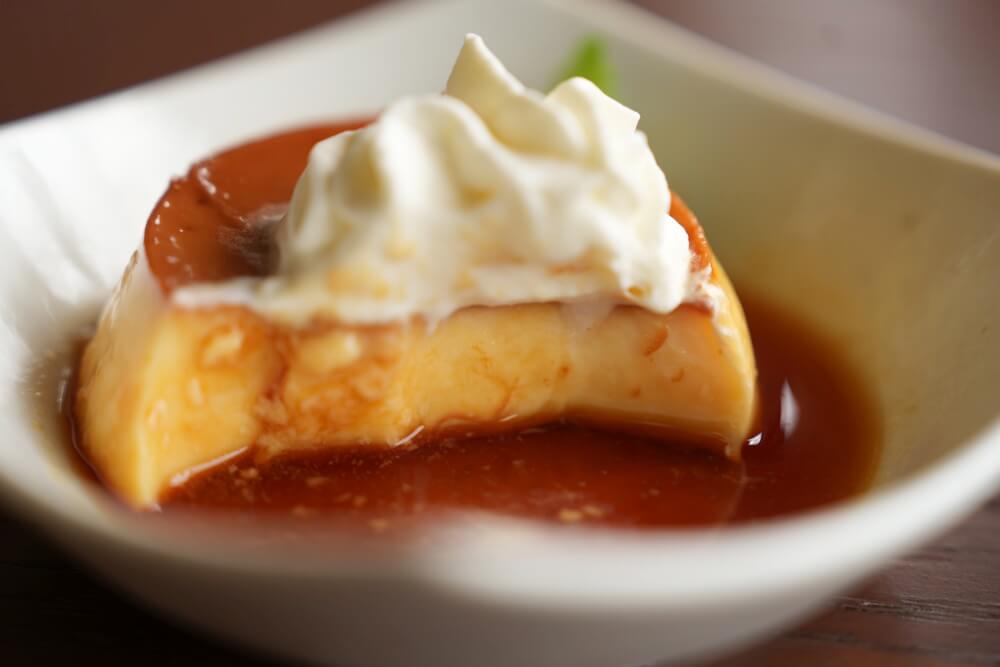 食後にこれまた自家製の硬めプリンをいただきました。