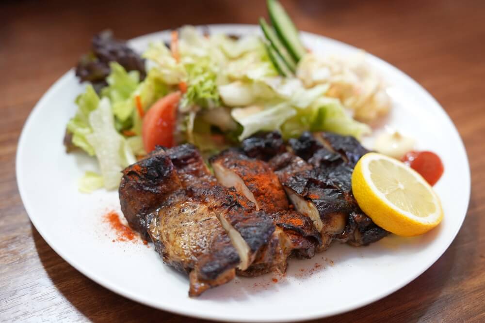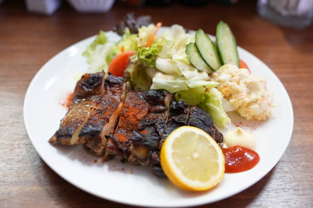 表面がギリギリまでスパイシーに焼き込まれたジャークチキン