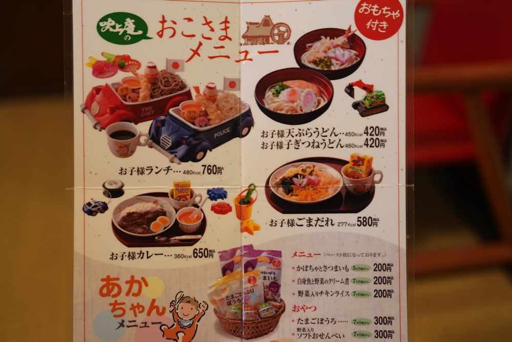 お子様メニューはこちら。お座敷の席もあるのでお子様連れにもおすすめです。