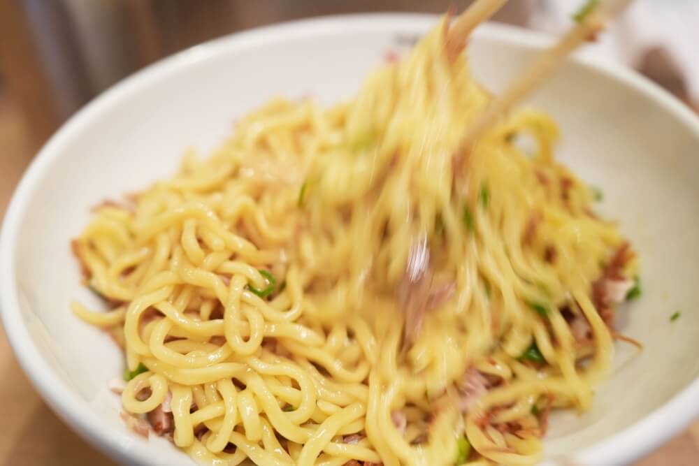 思いのままに麺を持ち上げて混ぜまくりましょう