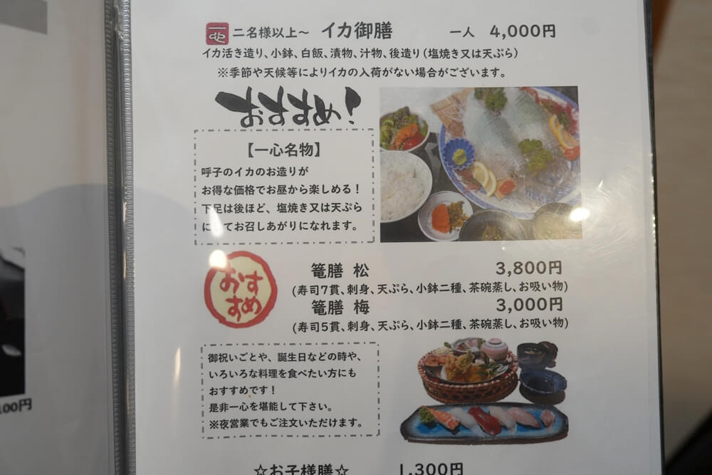 「イカ御膳」なんてのがあります ※2名様から注文可能