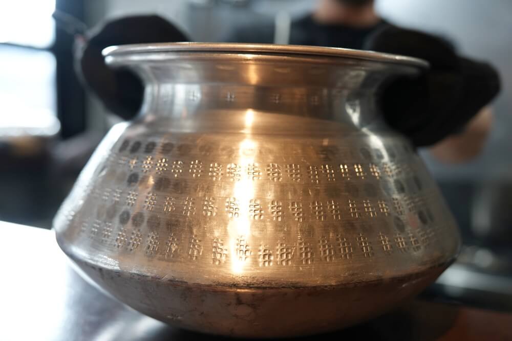 ちなみに、こちらのデーグ鍋といわれる変わった形の鍋でお米を炊いていくのがビリヤニで、