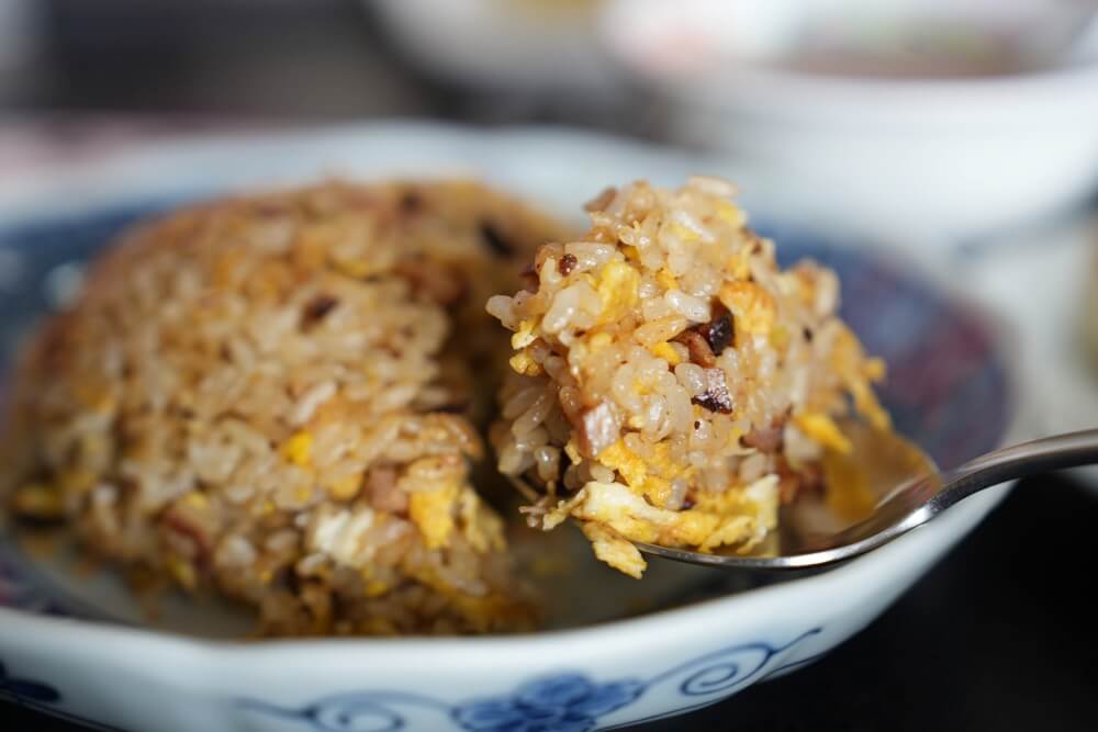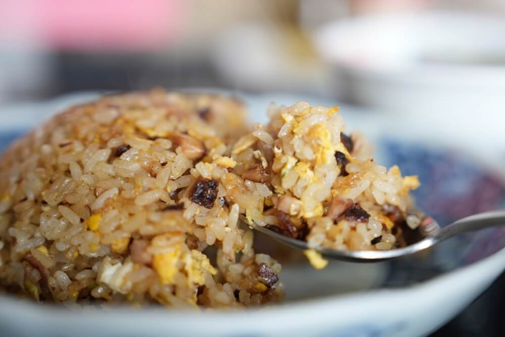青ネギが入っていない、卵とチャーシューのシンプルチャーハン。