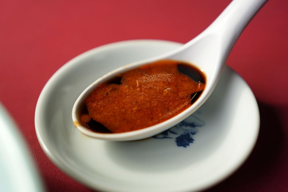色々話をしていると、店主が「天草の鯛を骨ごと砕いて作ったラー油」を出してくれました。