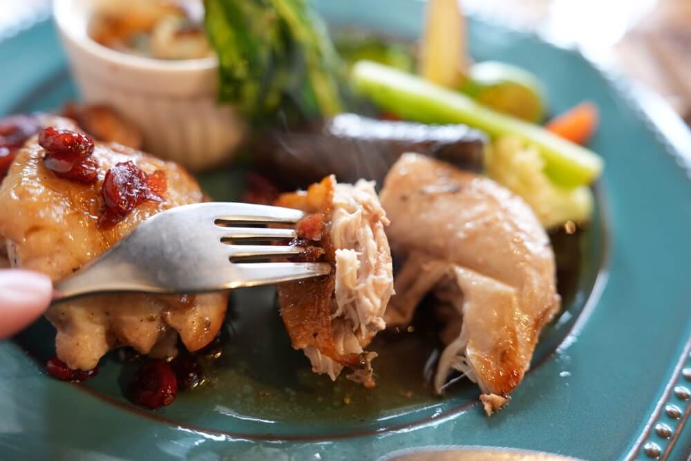 じっくりとローストされた若鶏の上にはドライクランベリーがこれまたたっぷり。