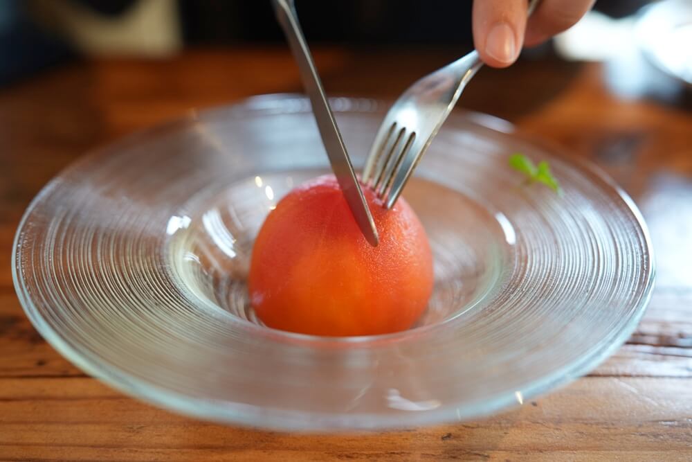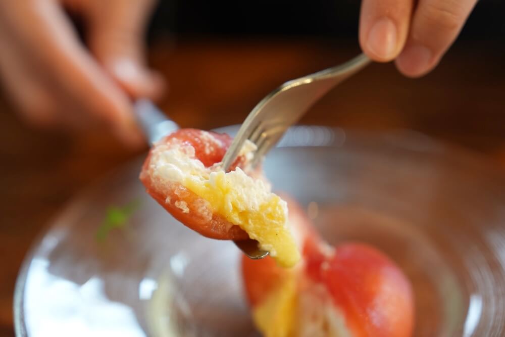 まさかの丸ごとトマトの中にクリームたっぷりという