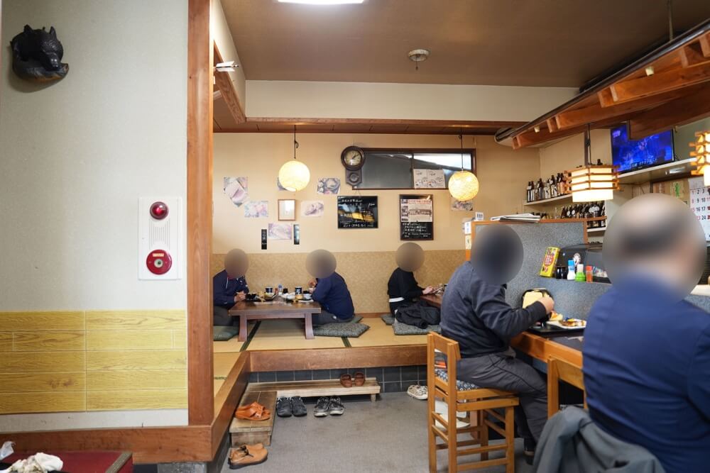 店内は奥にお座敷、手前がカウンター席になっています。満席で人気のようです。