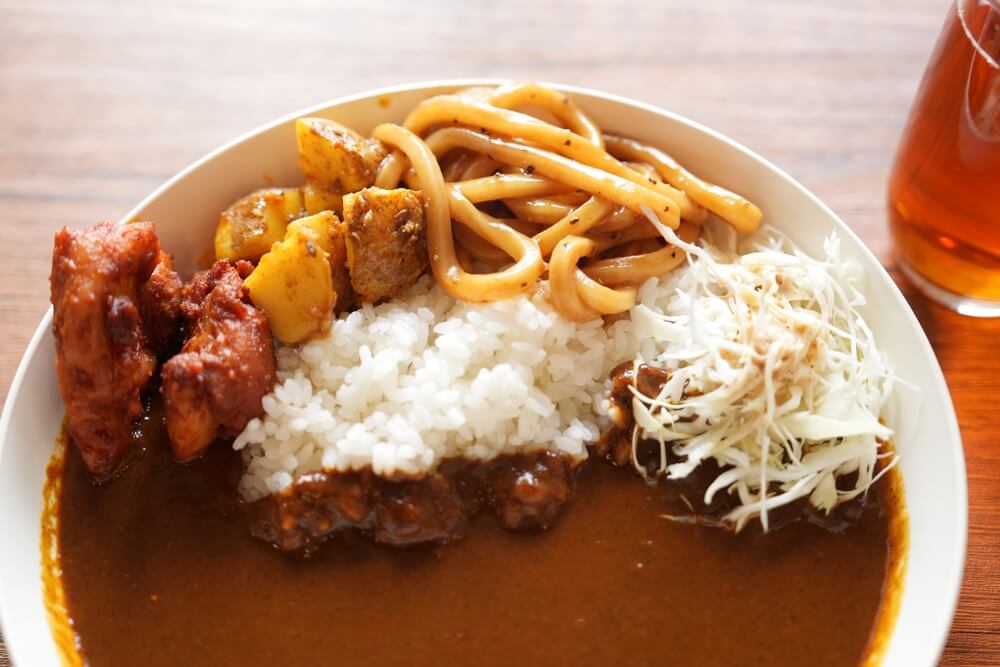 カレーはおそらく2種類が常時ある様子で、カレーの他にもチキンやうどん、じゃがいもなどのおかずも乗せ放題になります。