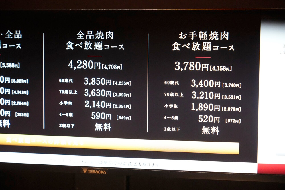 さてさて、食べ放題のお値段ですが、今は4,708円(税込)のコースが真ん中で最もポピュラーなんじゃないですかね。