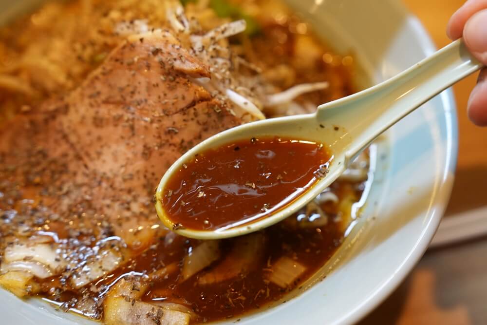 スープはいりこや鶏ガラ、椎茸で出汁を取っているそうで、そこに自家製でブレンドしたスパイスをペースト状にしたものを合わせていくそうです。