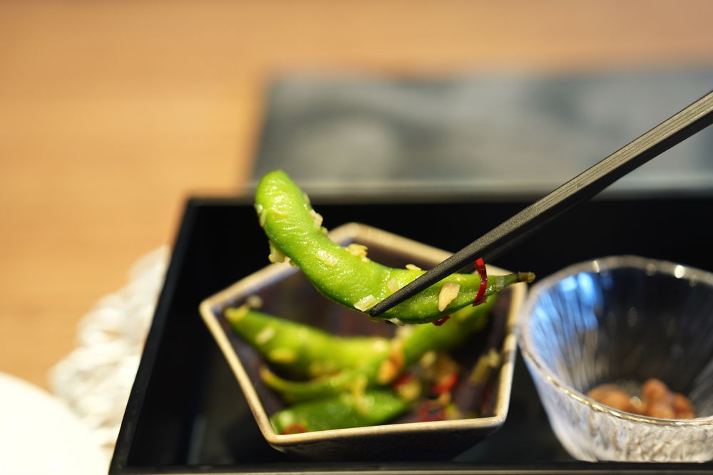 枝豆はペペロンチーノ的な、にんにく風味が香ばしい。