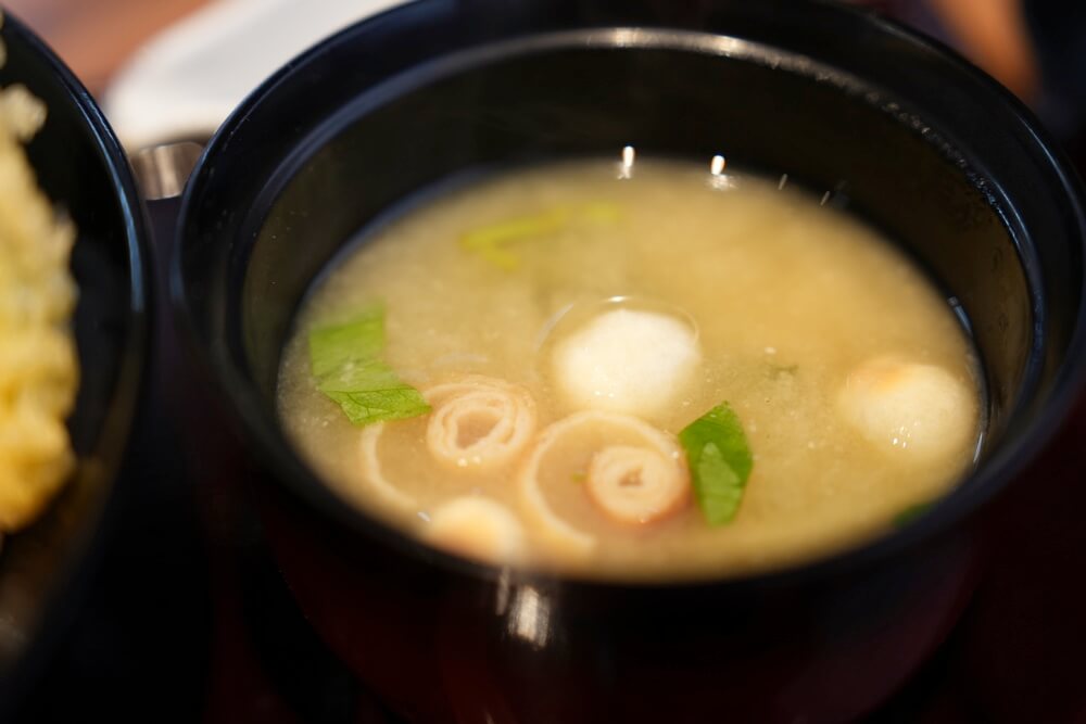 そしてそのタレの甘さを良い具合のところでさりげなく消してくれるのが味噌汁