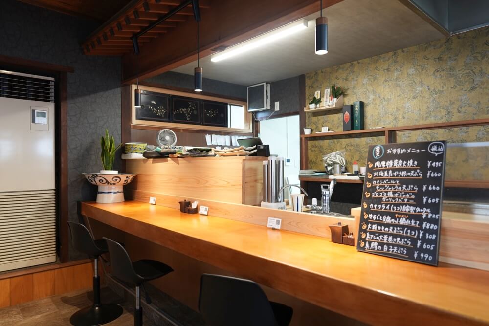 夜は居酒屋メニューが増えて、天ぷらとお刺身や炭火焼きのお店になります。