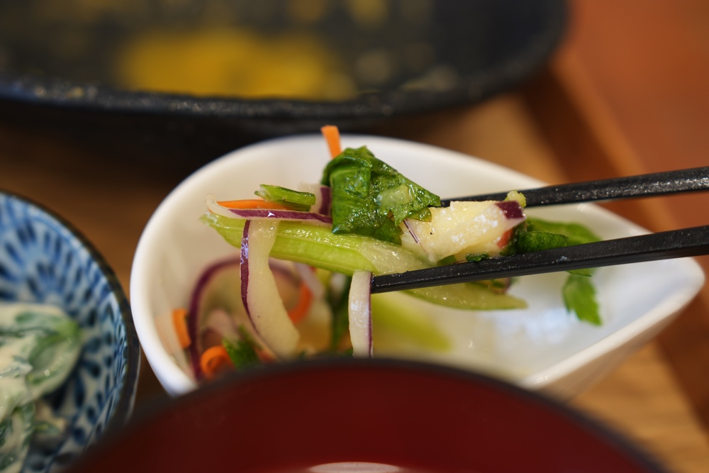 「すぎの子定食」がこちら!サラダのドレッシングがまず美味い