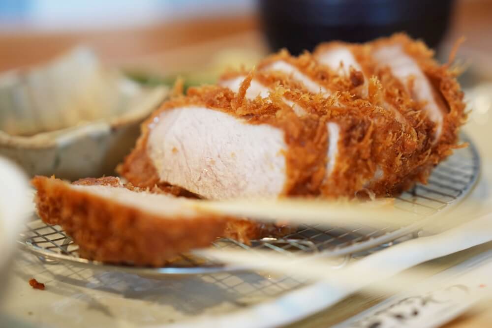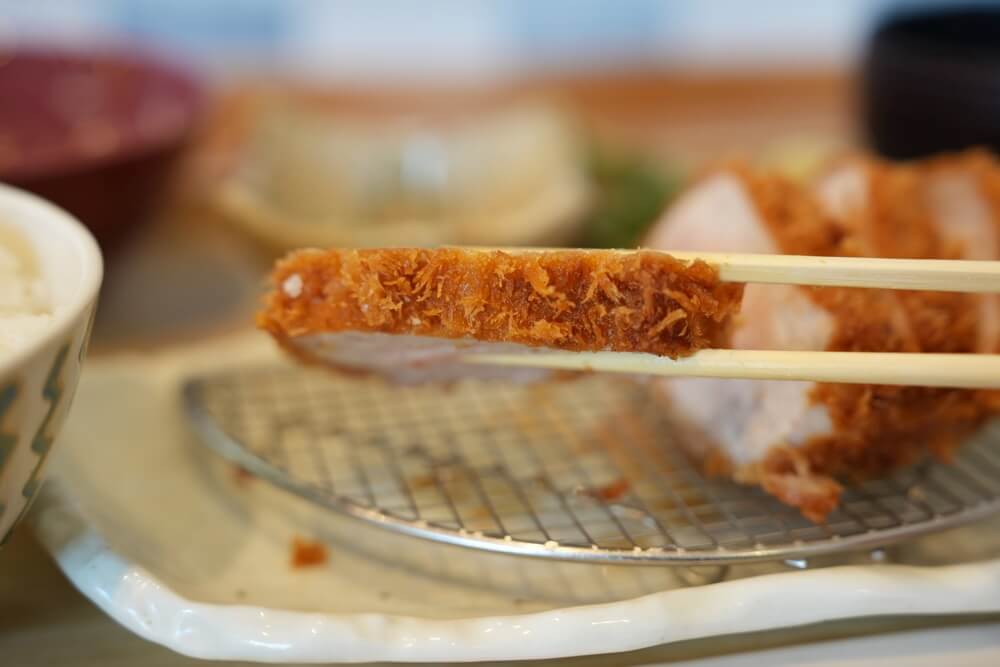 低温でじっくり揚げるしっとり「厚切りかつ」がこちらァ