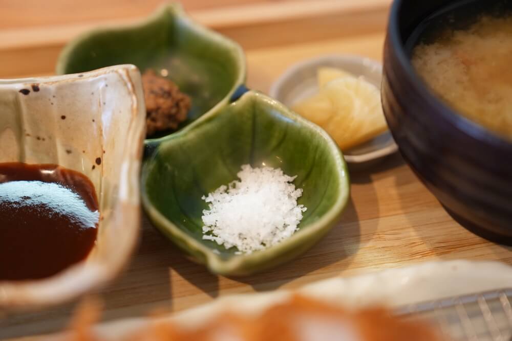ソースの他に、梅わさびという魔法の調味料の他に塩も付いてきます。