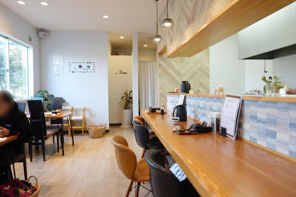 席はカウンター席と、テーブル席に、手前に個室のお座敷席(4-6名くらい)もあります。