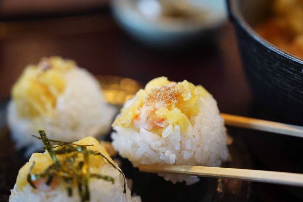 そして天むすセットにしたので、可愛いコロコロフォルムの天むすが付いてきました。
