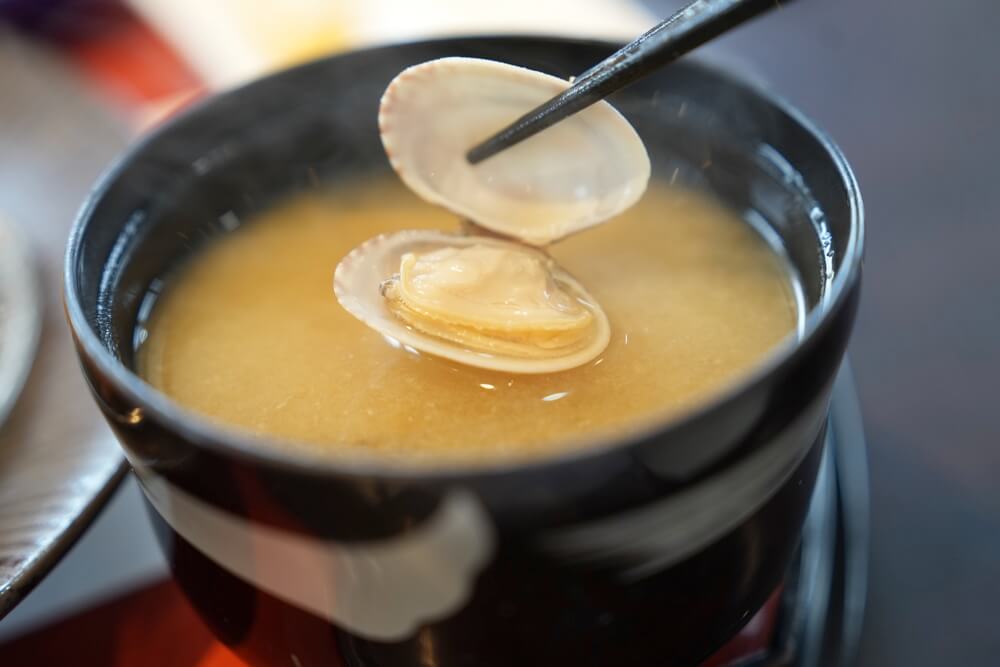 一緒に付いてくる貝汁が美味いです