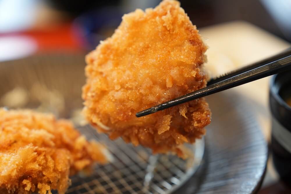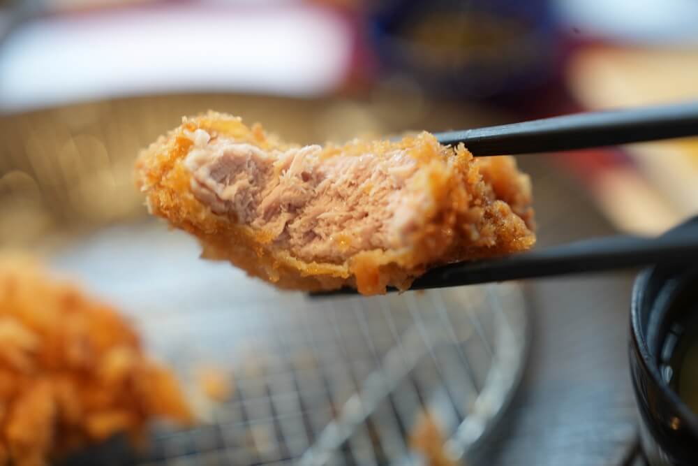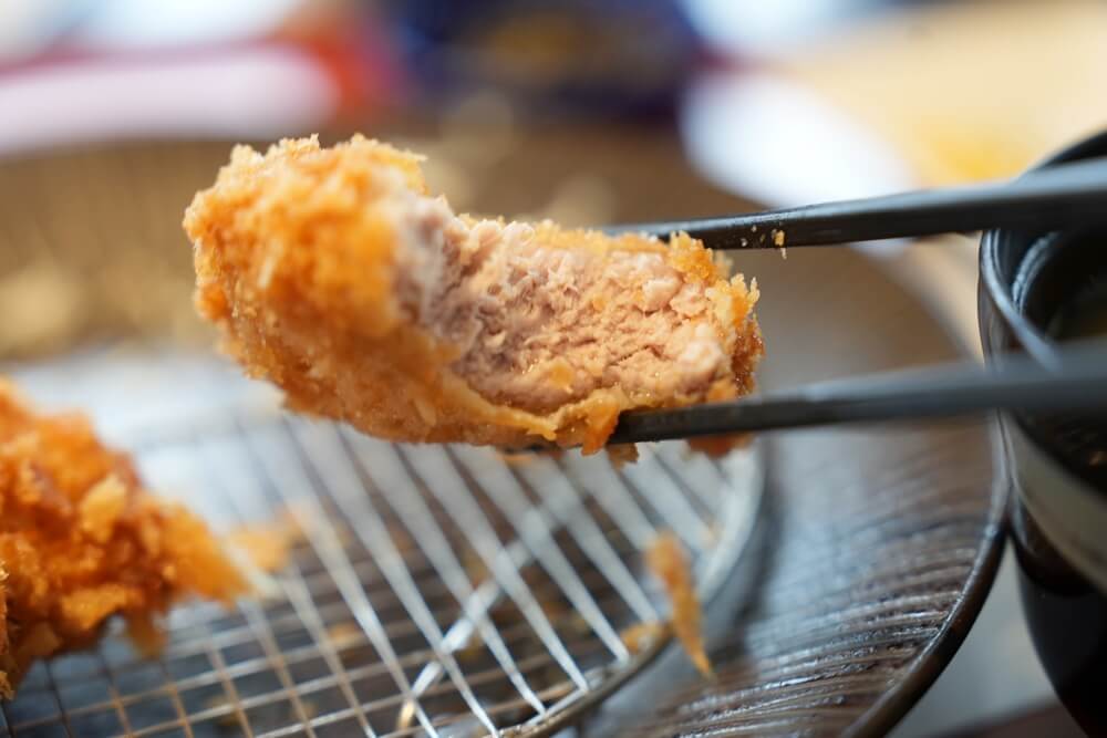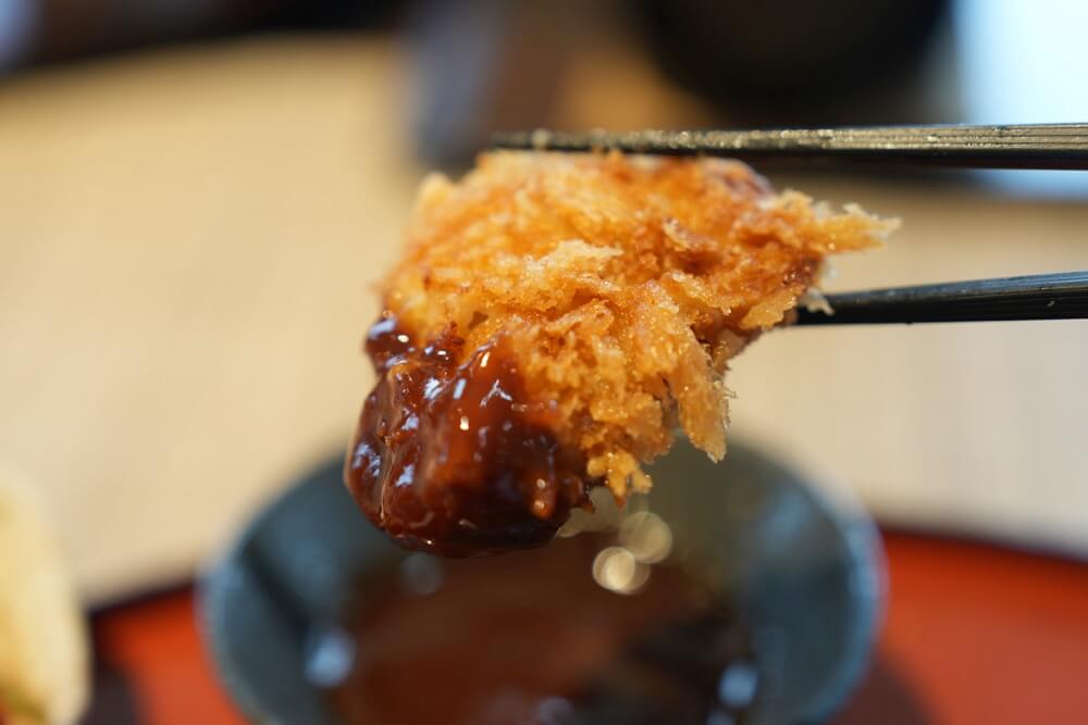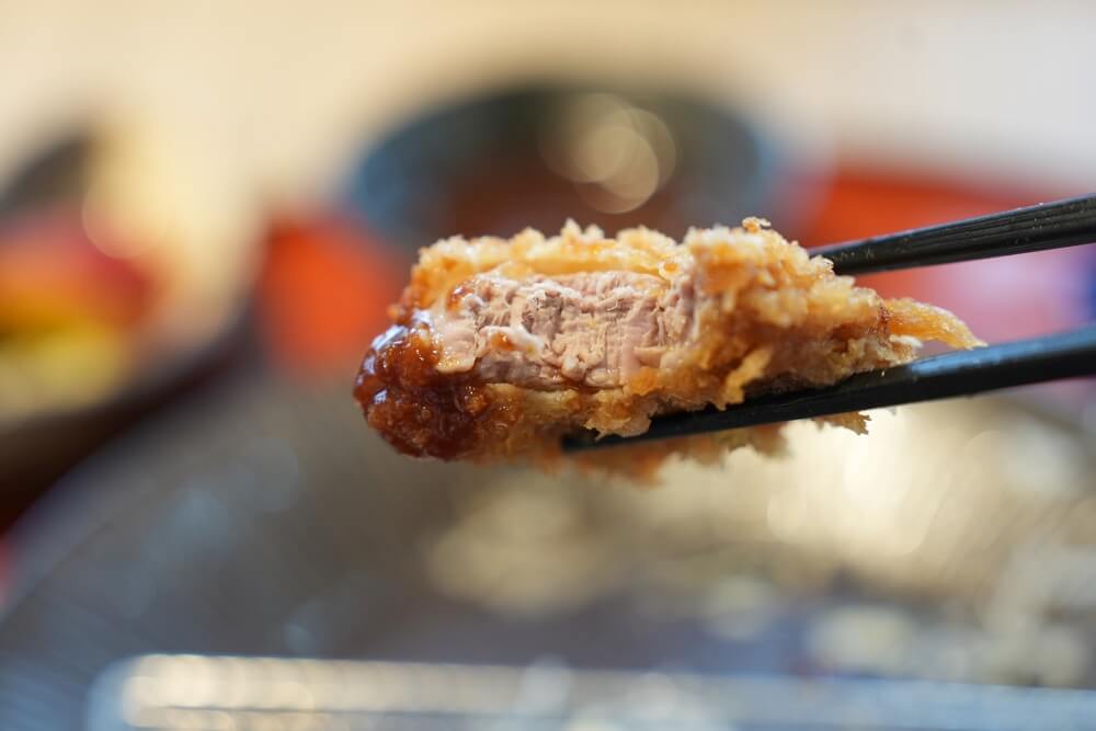 和水町のブランド豚「火の本豚」を使ったとんかつで、火を入れても柔らかい肉質が特徴です。