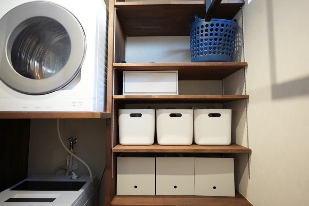 ランドリースペースも収納がシンデレラフィットで設計されていて、すっきり大容量。
