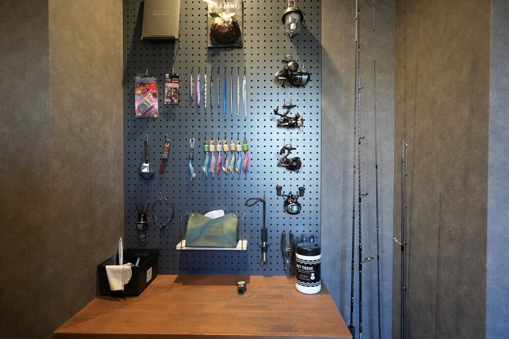 趣味の釣具なんかも綺麗にディスプレイされていて、広すぎない絶妙な大きさもまた基地感があって良い。
