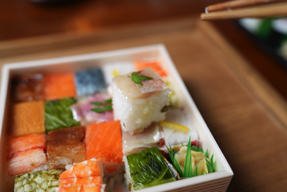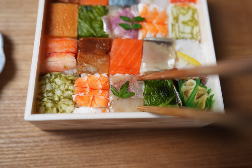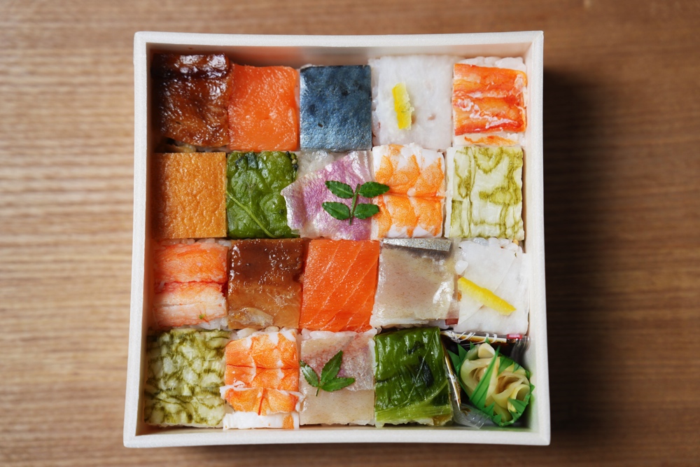 整然とタイル状にお寿司が詰められていまして、寸分違わずマスに並んだその様は