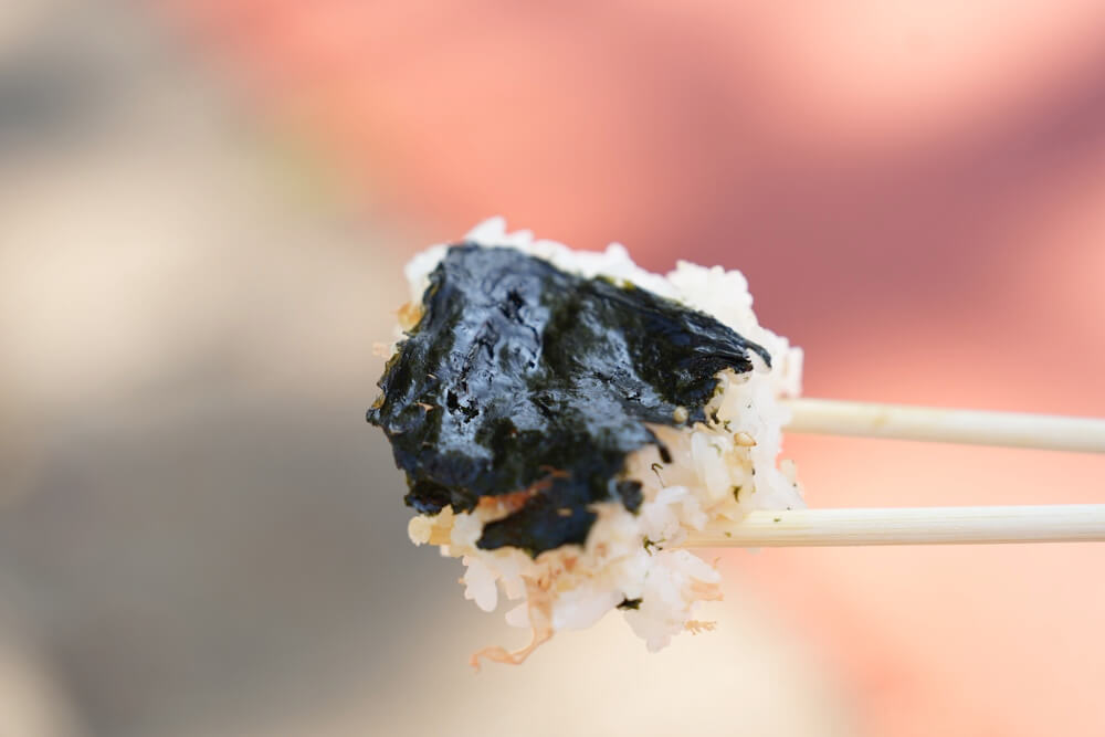 そして食べ進めていると、のりとご飯の間におかかと昆布のダブル下敷きが仕込まれていることに気が付きます。