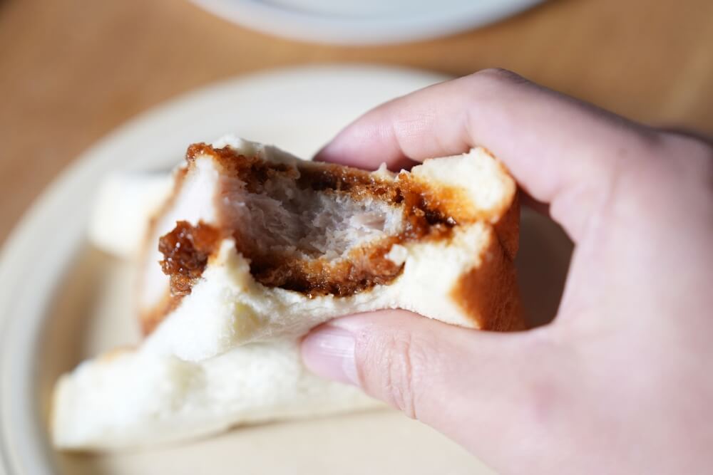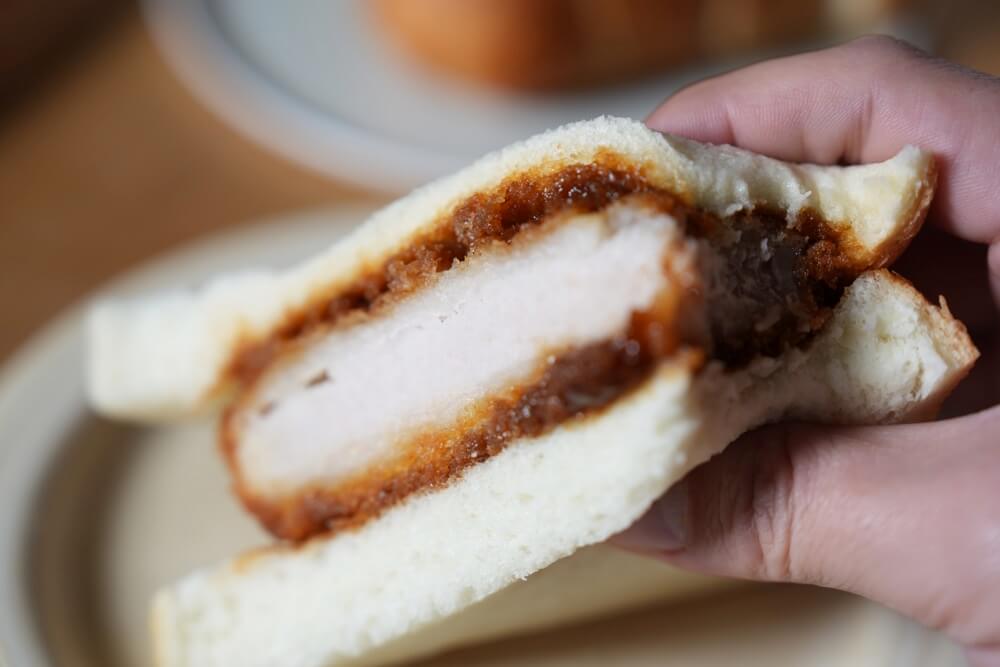 キャベツもコールスローも何も挟まっていない超シンプルなかつサンドで、
