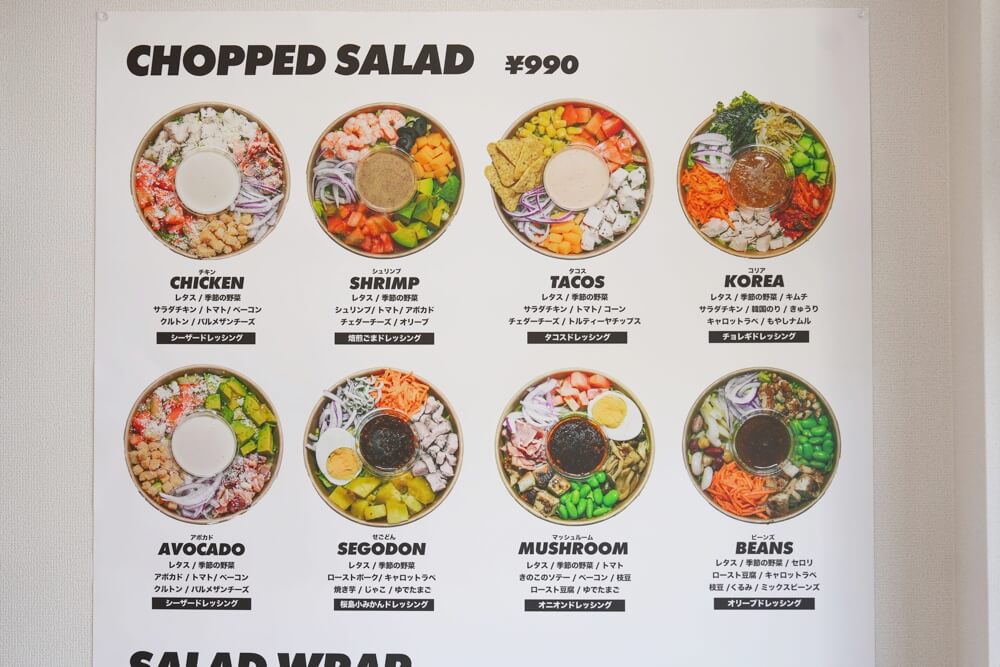 店内に入ると色とりどりのサラダが載ったメニューが見れます。