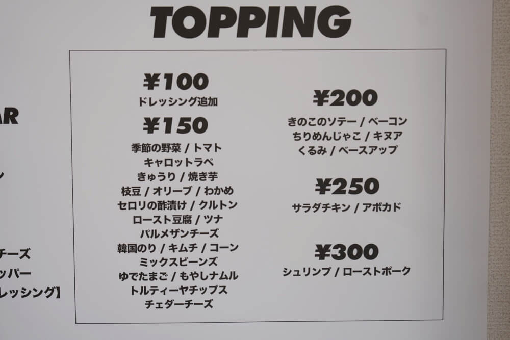 ちなみに、サラダの中身は上記のトッピングメニューの中から選んで交換することもできまして、
