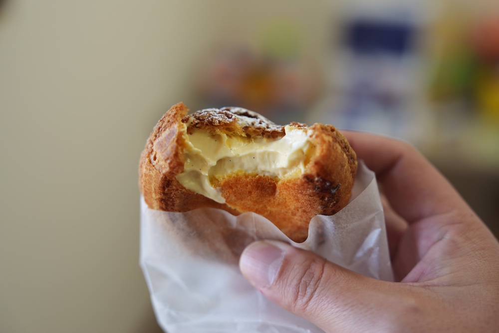 シュークリームはバニラビーンズたっぷりのクリームと、サクサクで甘いクッキー生地が弾ける音にテンションが上がります。