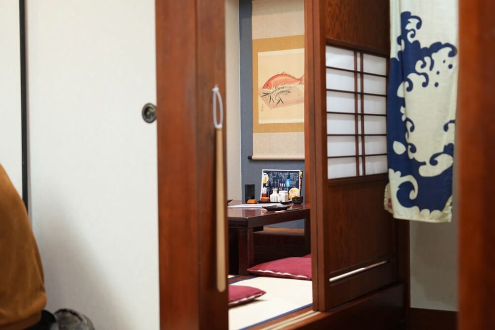 奥には個室もあって、この昔ながらの夜の居酒屋って感じの空気感に癒やされます。