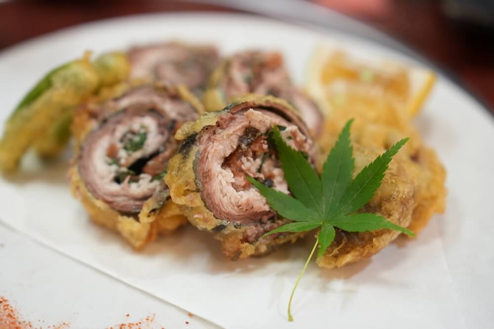 旬の秋刀魚は梅しそ巻き揚げで。