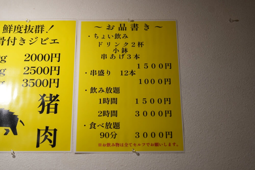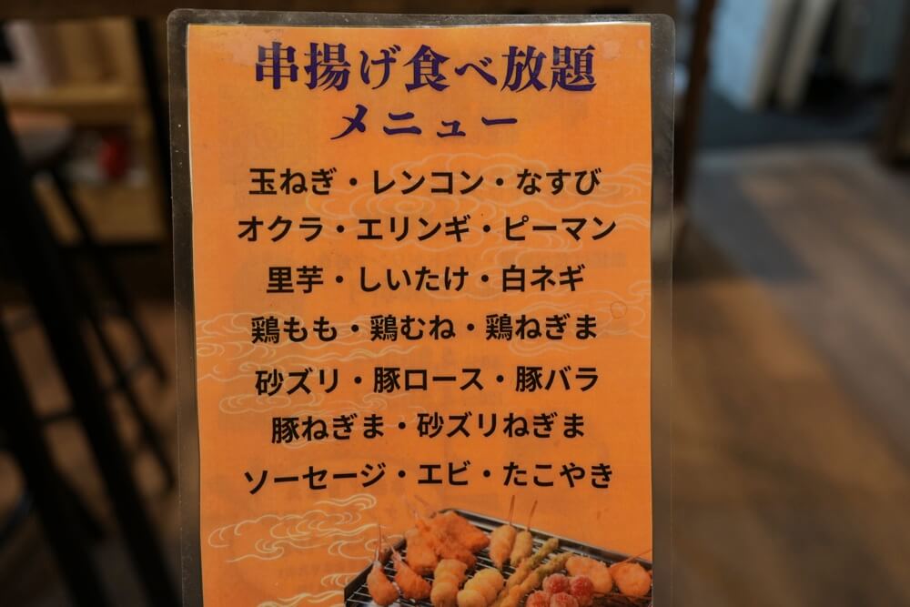 串揚げきよたのメニューはこちら。食べ放題もあります
