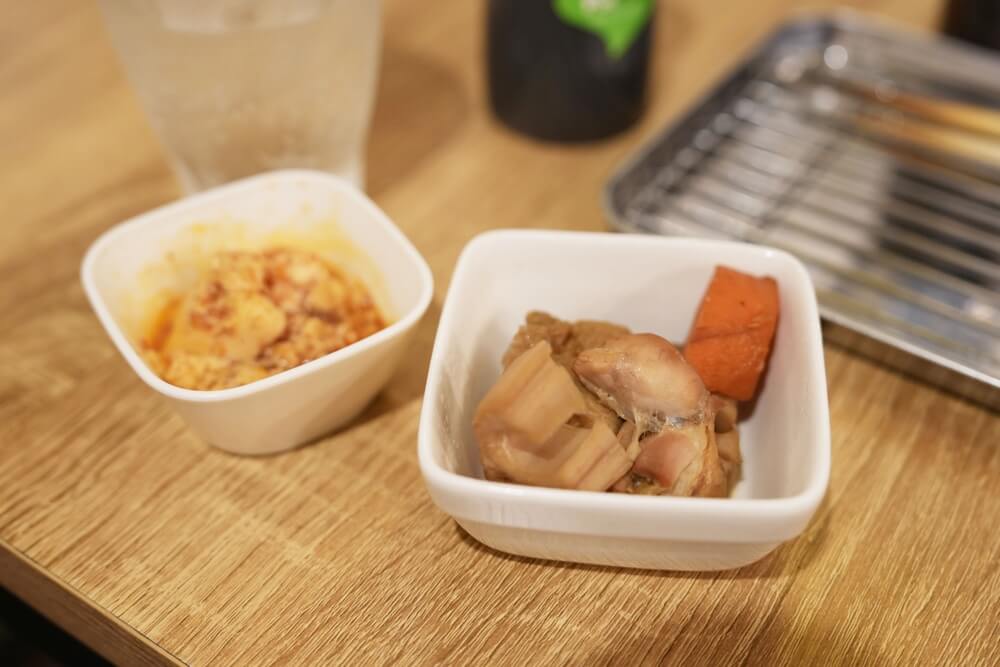 まずはお通しなのかサービス品なのかちょっと聞きそびれてしまったんですが、お母さん手作りの煮物と麻婆豆腐を出してくださいました。