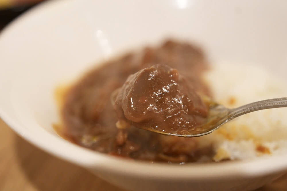 これが実に美味しくて、お肉はまるでビーフカレーを食べているかのようなホロホロ食感と味です。