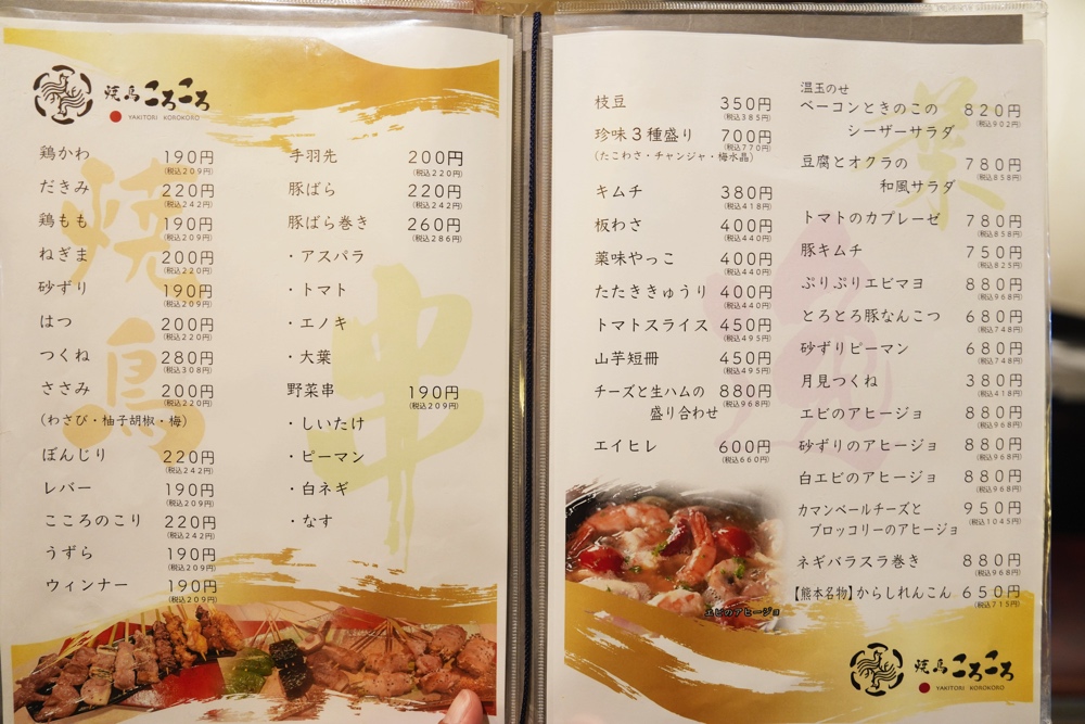焼鳥ころころの美味そうなメニューがこちら