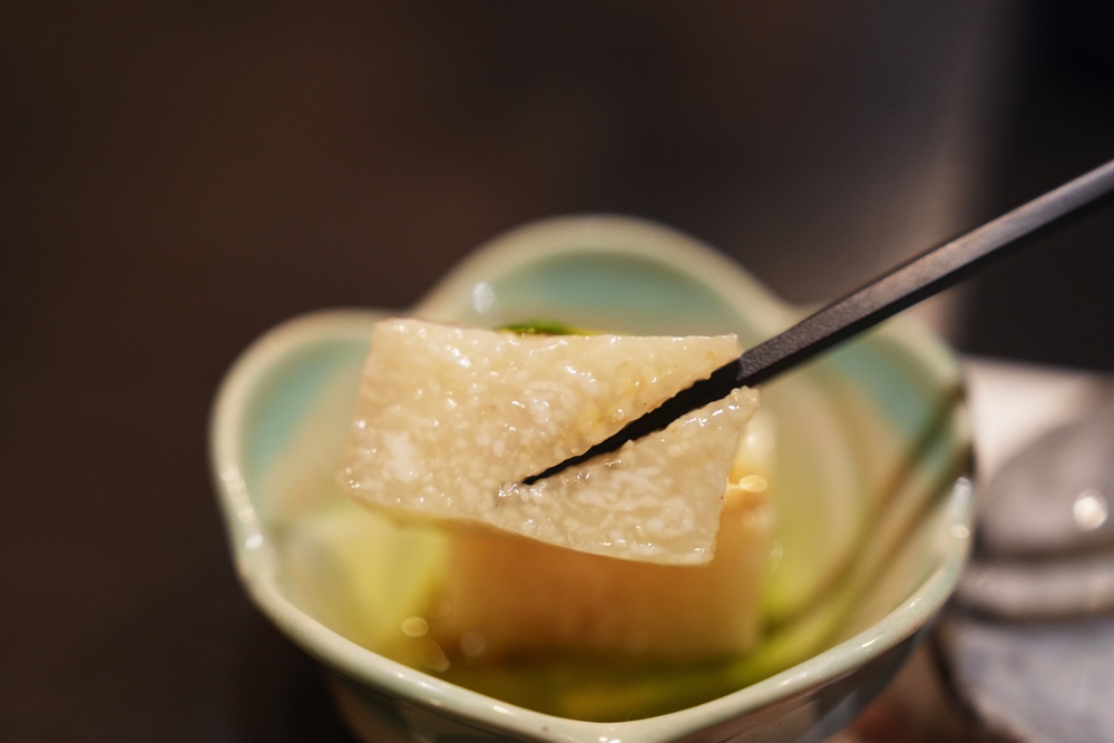 それではまずお通しに「山芋豆腐」をいただきます。