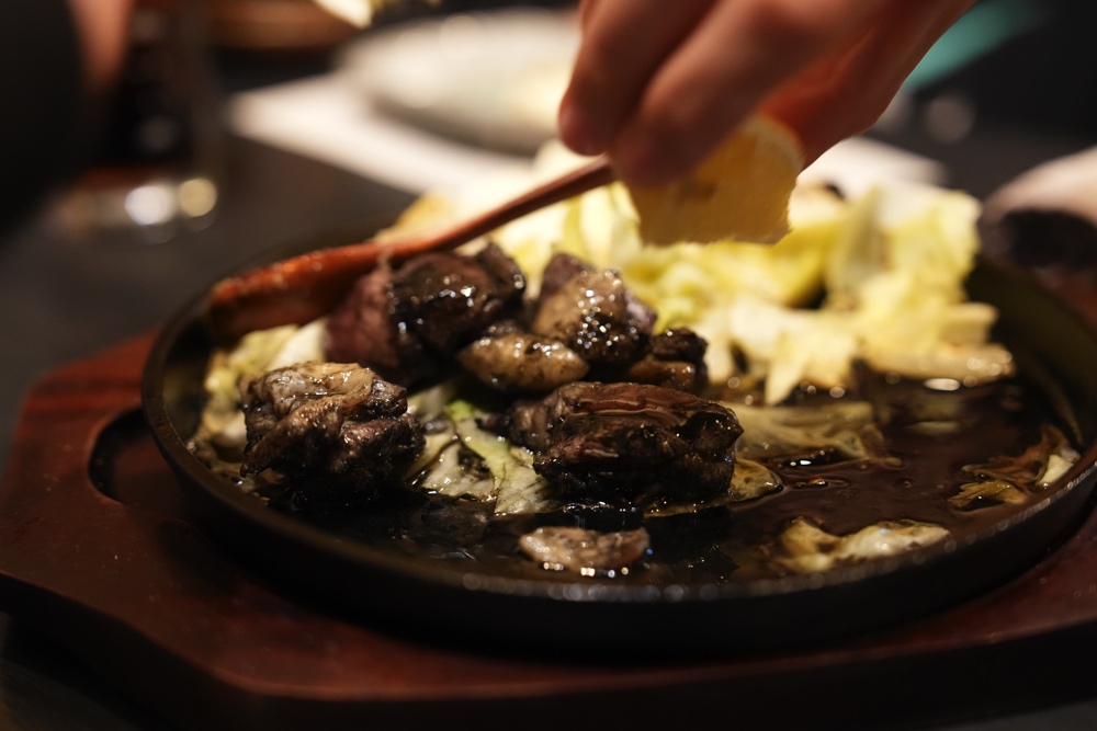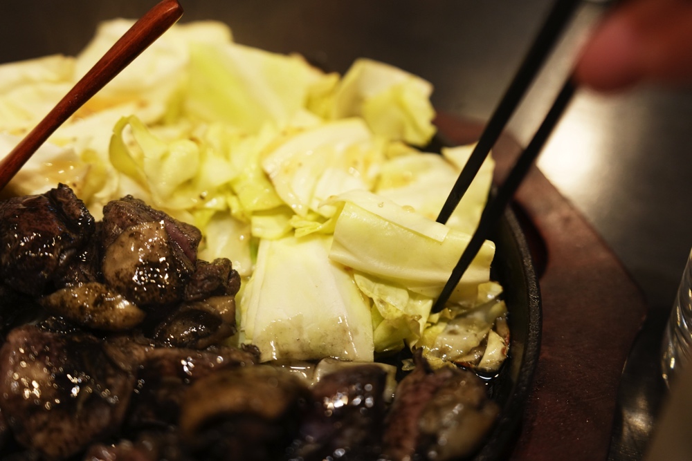 この炭火をまとった鶏油に絡めるキャベツがまた良いアテになりますね〜