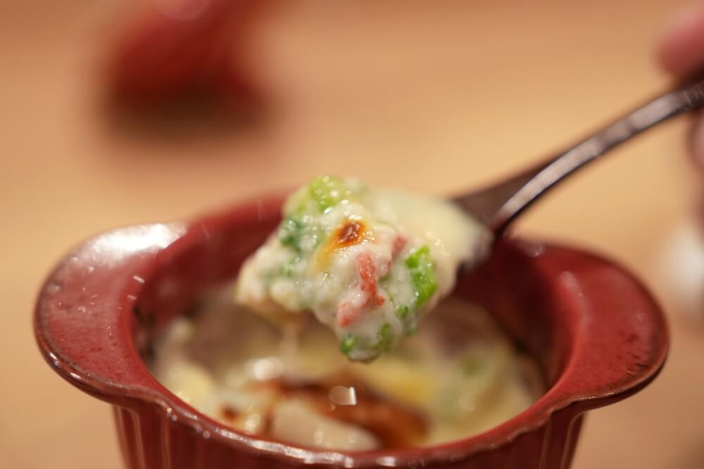 どんどんいきましょう。カニと菜の花のグラタン。