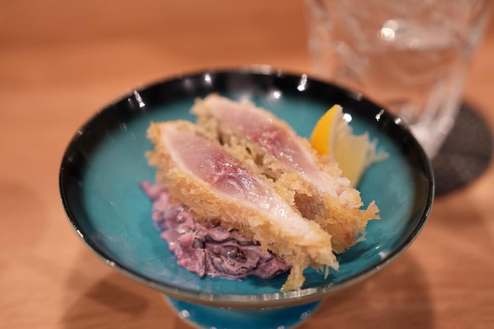 それではお通しにサワラの揚げ出しがやってきました。