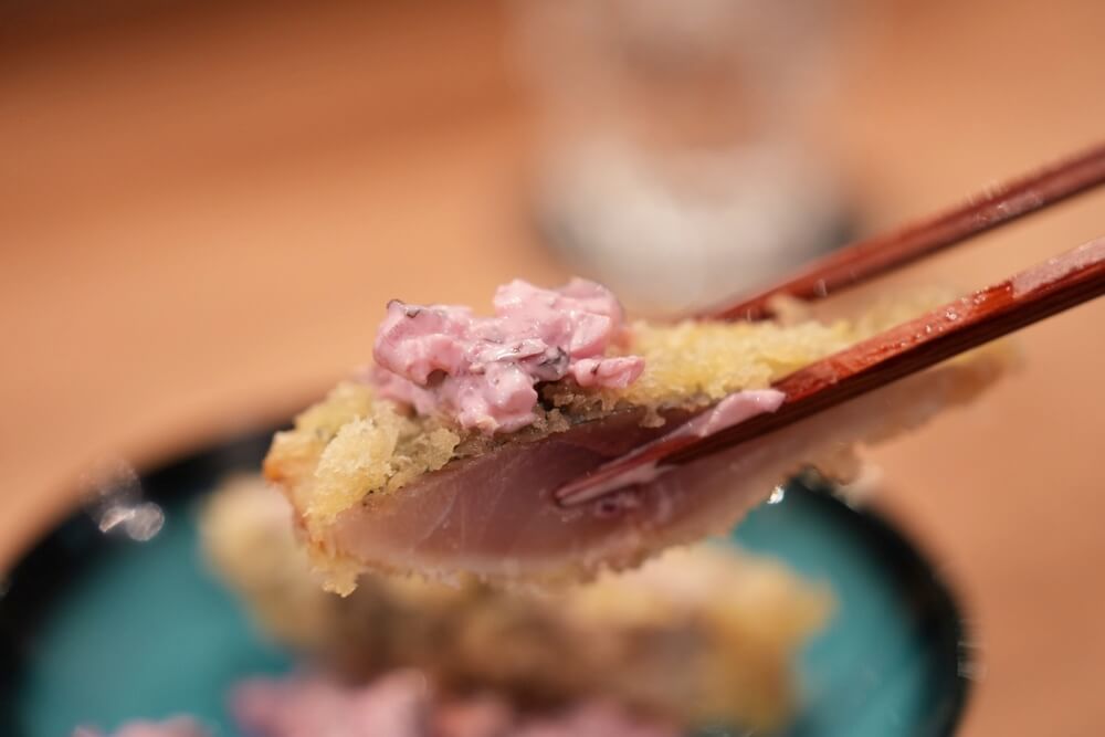 お刺身用のアジを揚げているのでめっちゃくちゃレアな火入れで、