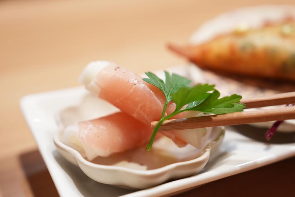 お通しは奥様の手作りなんだそうで、クリームチーズと生ハム巻きに、