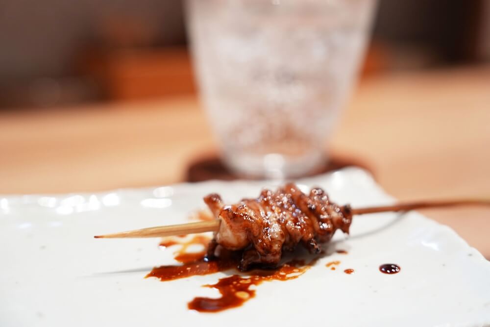 金しろとはまた打って変わって、銀しろハイボールの華やかな後味がとり皮の甘いタレとよく合います。